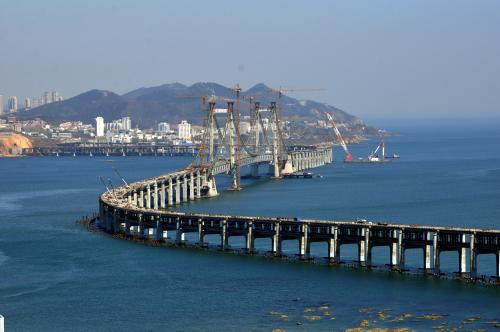 【跨海大橋】這座跨海大橋是中國首座海上地錨懸索式跨海大橋。是東北地區(qū)最長的跨海大橋,全長約6公里,主橋820米,其中主橋主跨460米,兩側(cè)邊跨各180米。大橋東起大連金沙灘東側(cè)的金銀山,向西跨越星海灣,在高新園區(qū)填海區(qū)域登陸,成為大連市“七縱七橫”道路網(wǎng)中的重要一橫;