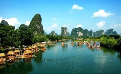 早餐后出發(fā)前往漓江碼頭,乘船游國家5A級“百里畫廊” 【漓江風(fēng)光】(三星船,磨盤山-陽朔:游船約為3.5小時),感受唐代詩人韓俞筆下:“江做青羅帶,山如碧玉簪”的漓江風(fēng)光,漓江像蜿蜒的玉帶,纏繞在蒼翠的奇峰中,造化為世界上規(guī)模最大、景色最為優(yōu)美的巖溶景區(qū)。沿途欣賞楊堤煙雨,浪石仙境,九馬畫山、黃布倒影,興坪佳境……抵達陽朔碼頭前往停車場;