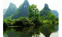 遇龍河兩岸青山連綿,造型各異,百態(tài)千姿;一路翠竹夾道,綠樹成行,芳草萋萋;而若遇晴日,則藍天白云,碧水綠草,開朗而明快;若逢雨天,更是霧繞云遮,百媚千嬌,將陽朔風(fēng)光表現(xiàn)的淋漓盡致;