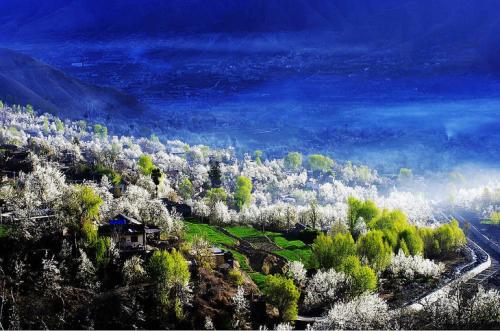 4、前往“中國(guó)雪梨之鄉(xiāng)”美譽(yù)的金川,萬物復(fù)蘇的初春三月,正值金川成千上萬棵梨樹花期,雪白色的梨花競(jìng)相開放,一片片、一層層的鋪散開來,漫山遍野的白色花海中夾雜零星新綠,空氣中氤氳著梨花清香,眼是天堂,身亦是天堂。