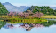 吃完早餐之后我們出發(fā)前往熱播劇《三生三世十里桃花》的實景拍攝地【菜花箐村】看最美的“小桂林”景致,三生緣起,靜待花期;灼灼桃夭、十里芳華。漫山遍野的“桃花”仙境,這便是上神折顏的避世之處。小橋,孤峰,桃花島…在湖水的倒映下美得特別不真實,恍若人間仙境,置身其中仿佛人在畫中游。