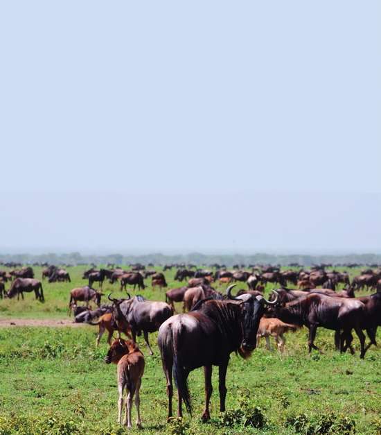 塞倫蓋蒂在馬賽語(yǔ)中是“無(wú)邊的平原”。她有著大地奉獻(xiàn)給人類最大規(guī)模的動(dòng)物群落:無(wú)數(shù)的角馬(牛羚)、斑馬、湯姆森瞪羚、格蘭特瞪羚、斑鬣狗、長(zhǎng)頸鹿以及眾多的獅子、大象、黑犀牛、水牛和花豹等聞名世界的非洲五大獸,還有300多種鳥類,構(gòu)成了世界最大的動(dòng)物自然生態(tài)系統(tǒng)。每年的五六月之間,塞倫蓋蒂的食草動(dòng)物(大約有150萬(wàn)只角馬和斑馬,30萬(wàn)只湯姆森瞪羚和3萬(wàn)只格蘭特瞪羚)從中央平原向西部常年有水的地區(qū)遷徙;到七八月之間其中一部分又從塞倫蓋蒂向馬賽馬拉草原遷徙,浩浩蕩蕩的動(dòng)物大軍形成震驚世界的壯麗景觀。在遷徙旅途中,“千軍萬(wàn)馬”過(guò)馬拉河的景象也可謂是大遷徙的一大亮點(diǎn)。