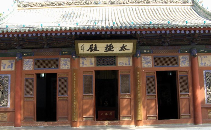 進(jìn)大門牌坊,即入正門。此門五間門面,共寬十八米,進(jìn)深兩間。正中門楣,原掛有祖籍天水的明代著名書法家胡纘宗所書"與天地準(zhǔn)"巨匾一方,現(xiàn)懸掛"太昊宮"匾一,含義同"與天地準(zhǔn)"相似,都是頌揚(yáng)伏羲造福人類的恩德廣大無邊。伏羲廟的這座正門,雖也經(jīng)清代局部修繕,但其主體部分,仍然保留了明代建筑風(fēng)格,實為難能可貴。版權(quán)所有山東聊城聊之旅國際旅行社有限公司,轉(zhuǎn)載必究!至今,屋頂完整無損,正脊兩端施龍吻,尾向內(nèi),背獸齊全,中央置寶瓶;脊身飾纏技牡丹。這套質(zhì)樸典雅、玲斑剔透的飾品構(gòu)件,工藝、藝術(shù)價值相當(dāng)之高,曾引起國內(nèi)不少建筑專家和藝術(shù)家的重視。步入前院,可見院東有棵古槐,傳為唐代栽植。歲月流逝,已逾千年;雖然屢經(jīng)兵燹天災(zāi),閱盡人間春色,至今依舊昂