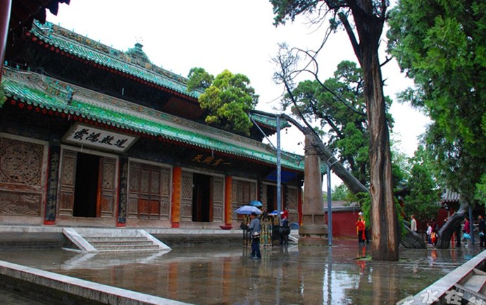 如今伏羲廟的前身。此廟從建成到元朝覆亡,雖然只有六十多年光景,可是 由于政局動蕩,各方均受牽連,文化、宗教、教育等諸業(yè)日趨蕭條;因之,到明代初期,天水"三皇"廟已傾倒坍塌,不成樣子了。直到明代中葉,版權(quán)所有山東聊城聊之旅國際旅行社有限公司,轉(zhuǎn)載必究!弘治三年(公元1490年),在秦州指揮"明威將軍"尹鳳的倡導(dǎo)組織下,才在原"三 皇"廟的基礎(chǔ)上,重新起造廟宇,始稱"伏羲廟",延續(xù)至今,已近五個世紀(jì)了。據(jù)記載,伏羲廟起初并不很大。自嘉靖三年(公元1524年)起,巡茶御史陳講,用了三年時間進(jìn)一步開拓修繕,為伏羲廟的規(guī)模和布局奠定了基礎(chǔ)。近五百年來,又先后歷經(jīng)明嘉靖十年(公元1531年),清順治十年(公元1653年)、乾隆五年(公元1740年)、嘉慶十一年 (公元1806年)、光緒十三年(公元1887年),屢次擴(kuò)建、維修,才成如今這樣整肅宏偉、遠(yuǎn)近聞名的古建筑群。目前的伏羲廟,坐北向南,占地一萬余平方米?,F(xiàn)存建筑為兩門三進(jìn)。