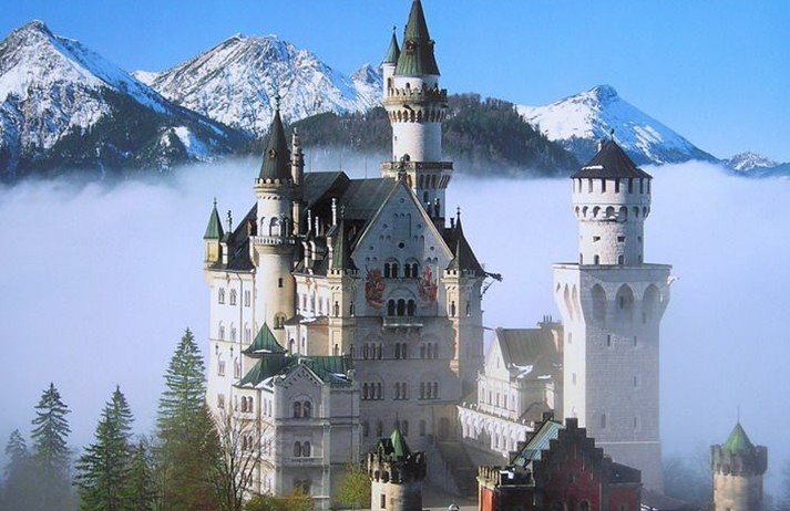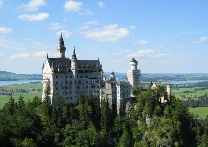 這座城堡是巴伐利亞國王路德維希二世的行宮之一。共有360個房間,其中只有14個房間依照設計完工,其他的346個房間則因為國王在1886年逝世而未完成。是德國境內受拍照最多的建筑物,也是最受歡迎的旅游景點之一。新天鵝城堡是德國的象征,世界上沒有一個國家像德國那樣擁有如此眾多的城堡,據(jù)說目前仍有14000個。在眾多的城堡中,最著名的是位于慕尼黑以南富森(Fussen)的阿爾卑斯山麓的新天鵝城堡。由于是迪斯尼城堡的原型,也有人叫白雪公主城堡。建于1869年。從奧格斯堡到富森,光是坐火車一路的風景都會讓遐思神往。這猶如人間仙境的地方藏著有關魔法、國王,騎士的古老的民間傳說,還有那無邊原始的森林、柔嫩的山坡、無邊的綠野上漫步著成群的牛羊,積雪終年的阿爾卑斯山和無盡寬闊的大湖。