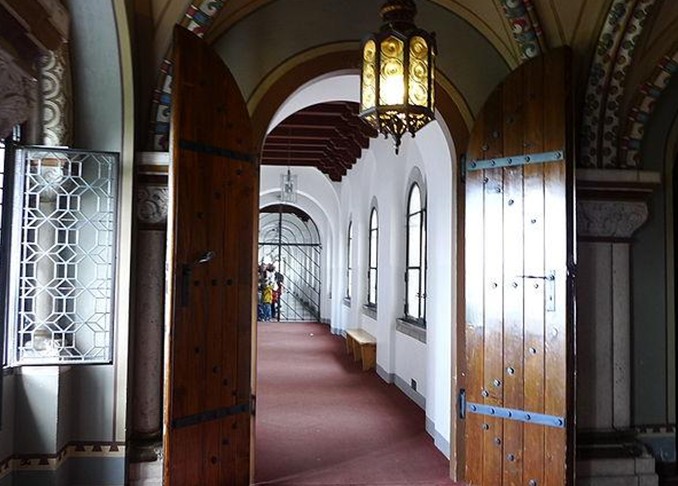 進古堡的大門后,只見入口,窗戶,列柱廊等全都是半圓頭拱,這是羅馬式的建筑的特征之一。后面有一堵墻壁上的拱門, 叫作盲拱,在其屋檐下及窗下,設有串連的小圓頭拱的盲拱帶,緊接著數(shù)間的國王起居室,版權所有山東聊城聊之旅國際旅行社有限公司,轉載必究!都是哥德式的建筑,并以瓦格納的歌劇作品中世紀的傳說作為題材人物所繪制的壁畫作為主題裝飾。
