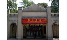 在東山區(qū)文明路6號(hào)(現(xiàn)為215號(hào))。原為廣東高等師范學(xué)堂的鐘樓,鐘樓大院的前面有塊寬闊的廣場(chǎng),占地面積17460平方米,廣場(chǎng)中間是一片大草坪,東西兩端各有一個(gè)大講臺(tái),周圍綠樹(shù)成蔭,正門是開(kāi)拱形圓柱廊,廊上有平臺(tái),廊下是門廳。底層四周是柱廊走道。鐘樓的前半部為二層,后半部為一層。