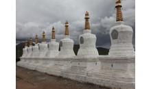 位于青藏公路當(dāng)雄至那曲約三分之一段路旁,蒼茫的大草原上兀立這一組塔群使草原又帶上了幾分神秘悲壯色彩。據(jù)傳當(dāng)年格薩爾王曾率兵在這里馳騁征戰(zhàn),他旗下的一名大將夏巴戰(zhàn)死于此。為表彰夏巴的功勛,格薩爾修筑八塔安葬夏巴。
