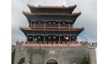 振揚(yáng)門為蓬萊水城南門,坐北朝南,建于明洪武九年,門樓久圯,僅存門洞。1987年修復(fù),門洞拱頂,寬3米,高5.3米,進(jìn)深13.75米,門洞上方嵌“振揚(yáng)門”匾額,字為吳作人手筆。門樓為兩層閣樓,外觀三層飛檐(俗稱“三滴水”),屋面開山,覆琉璃瓦,脊置六獸,檐角下系風(fēng)鈴,門樓四周為明廊,一層底面與城墻齊高,南北明廊外側(cè)為城堞,二層重檐,明廊柱間有木欄環(huán)繞。振揚(yáng)門兩側(cè)各修復(fù)城墻約50米,門前建有5000平方米廣場(chǎng)。