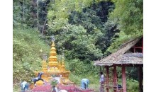 位于勐??h城東南佛雙公路7公里處的曼壘村后山頂上。母塔高9米,子塔高6米,造型美觀,周圍古木參天,環(huán)境優(yōu)美。傳說佛祖釋迦牟尼曾帶領(lǐng)一名高徒到西雙版納傳經(jīng)時(shí)曾坐在此地休息,后來當(dāng)?shù)卮鲎迦嗣駷榱思o(jì)念他,運(yùn)來磚石建塔。據(jù)說此塔已有1000多年歷史。