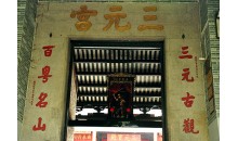 廣州三元宮是嶺南現(xiàn)存歷史較長(zhǎng)、規(guī)模較大的道教建筑。據(jù)史書(shū)記載為東晉時(shí)南海太守鮑靚所建,明代萬(wàn)歷年間重修時(shí)始稱(chēng)三元宮。三元宮坐北朝南,在越秀山南麓,依山而建,漸次升高,現(xiàn)存各殿堂建筑總面積約2000平方米,布局以正對(duì)山門(mén)的三元殿為中心,殿前拜廊,東西連鐘鼓樓。大殿后為老群殿,大殿兩側(cè)自南向北,東側(cè)為客堂、齋堂、舊祖堂、呂祖殿;西側(cè)缽堂、新祖堂、鮑姑殿等建筑。