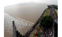 錢江潮,又稱海寧潮。以“一線橫江”被譽(yù)為“天下奇觀”。海寧觀潮之風(fēng)漢時即已蔚然,唐宋時更盛。北宋詞人潘閬所唱“長憶觀潮,滿郭人爭江上望。來疑滄海盡成空,成面鼓聲中。弄潮兒向濤頭立,手把紅旗旗不濕。別來幾向夢中看,夢覺尚心寒。”便是當(dāng)年“弄潮”與“觀潮”的真實寫照。