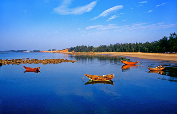 三娘灣位于欽州市犀牛腳鎮(zhèn)東面約5公里處海灣邊,距離欽州市區(qū)約38公里,南臨北部灣,背倚烏雷山,掩映在枝繁葉茂的紅樹(shù)林里的海灘潔白柔軟,站在如天外流星墜落海灘的三婆石上,朝可觀旭日東升,晚可賞夕陽(yáng)斜照;版權(quán)所有山東聊城聊之旅國(guó)際旅行社有限公司,轉(zhuǎn)載必究!還可拜烏雷伏波廟、游威德寺、觀東漢大將風(fēng)采;更妙的是登上漁船出海觀光,品海鮮、沐海風(fēng),觀賞珍奇的中華白海豚,盡享藍(lán)天碧海、人歡魚(yú)躍的情趣。