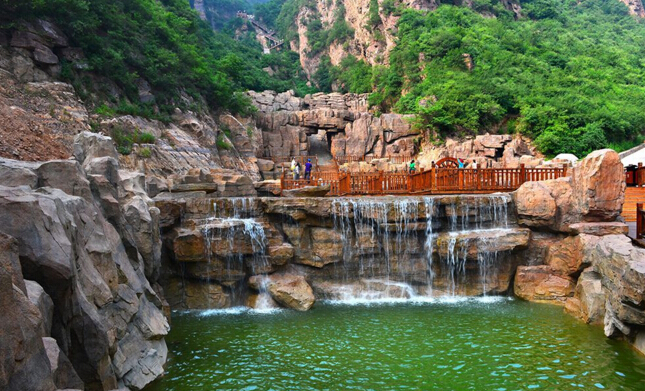 “天路奇觀(guān)”,是景區(qū)的一條山水游線(xiàn),全長(zhǎng)1000米,臺(tái)階1688個(gè)。走進(jìn)天路奇觀(guān),大家可以看到,天路兩邊巨峰對(duì)峙,直插云霄,谷深且長(zhǎng),蜿蜒向天,好像一條天路展現(xiàn)在我們的面前,沿途分布著壯美奇特、撼人心魄的景觀(guān),所以稱(chēng)之為“天路奇觀(guān)”。它由迎賓棧道、黛眉三潭(洗心潭、清心潭、靜心潭)、山澗飛瀑、赤壁丹崖等景觀(guān)組成,現(xiàn)在我們將逐一領(lǐng)略這奇山、奇水、奇峰、奇路、奇石等風(fēng)景。