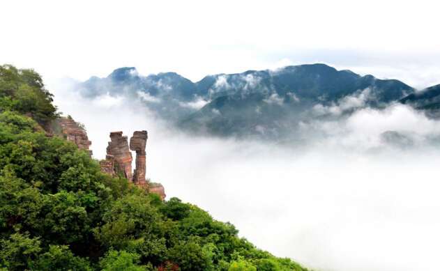 它四壁如削,奇崖怪石,千姿百態(tài);或如危塔,或如城闕,或如樓閣,或成壇臺(tái),連綿不斷,鬼斧神工,有相對(duì)高度差別不大的16座山峰,依次為梳妝臺(tái)、南天門(mén)、造鐘峰、望鄉(xiāng)峰、月老峰、抱犢峰、鳳凰嶺、燕子峰、金壇峰、睡仙峰、息壤峰、千佛山、萬(wàn)佛山、大獨(dú)立峰、小獨(dú)立峰、將軍寨,多呈麗姿、峭壁萬(wàn)仞,峰上峭石林立,攀路艱難,林繁藤茂,山頂卻開(kāi)闊平坦,林木茂密,花卉叢生,系一天然草原,頗具歐洲風(fēng)格。