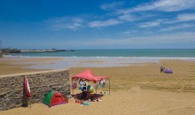 趕海撿貝園內(nèi)礁石密布,奇石林立,千姿百態(tài),物產(chǎn)豐富,有各種貝類、魚、蝦、蟹、海螺、海參、海菜等海產(chǎn)品,一年四季可趕海拾貝、挖蛤、垂釣。每天落朝時(shí),海水退卻3公里左右,是趕海撿貝的好時(shí)機(jī)。夜晚沙灘篝火晚會(huì),載歌載舞,更是令人情舒暢。