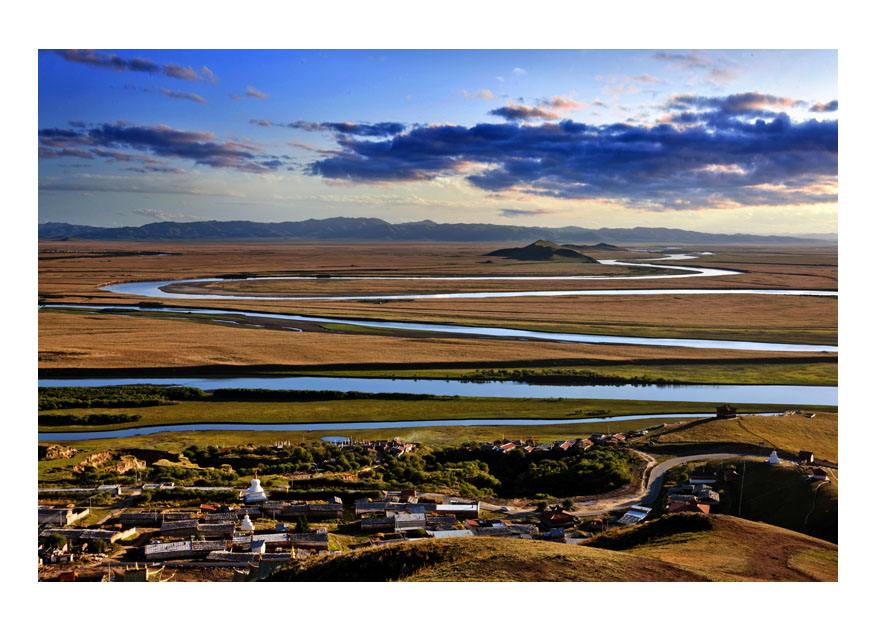 九曲黃河第一灣位于若爾蓋縣唐克鄉(xiāng),距縣城61公里。地處草原腹心地帶,白河于此匯入黃河,形成浩大氣勢(shì)。河面寬而蜿蜒,曲折河水分割出無數(shù)河洲、小島,水島翔集、漁舟橫渡,被中外科學(xué)家譽(yù)為“宇宙中莊嚴(yán)幻影”。黃河第一彎地勢(shì)平坦,水流舒緩,小島、岸邊紅柳成林。索克藏寺院修筑于黃河第一彎山凹臨河處,版權(quán)所有山東聊城聊之旅國際旅行社有限公司,轉(zhuǎn)載必究!白塔古寺,帳篷炊煙相伴黃河,更顯自然悠遠(yuǎn)博大。