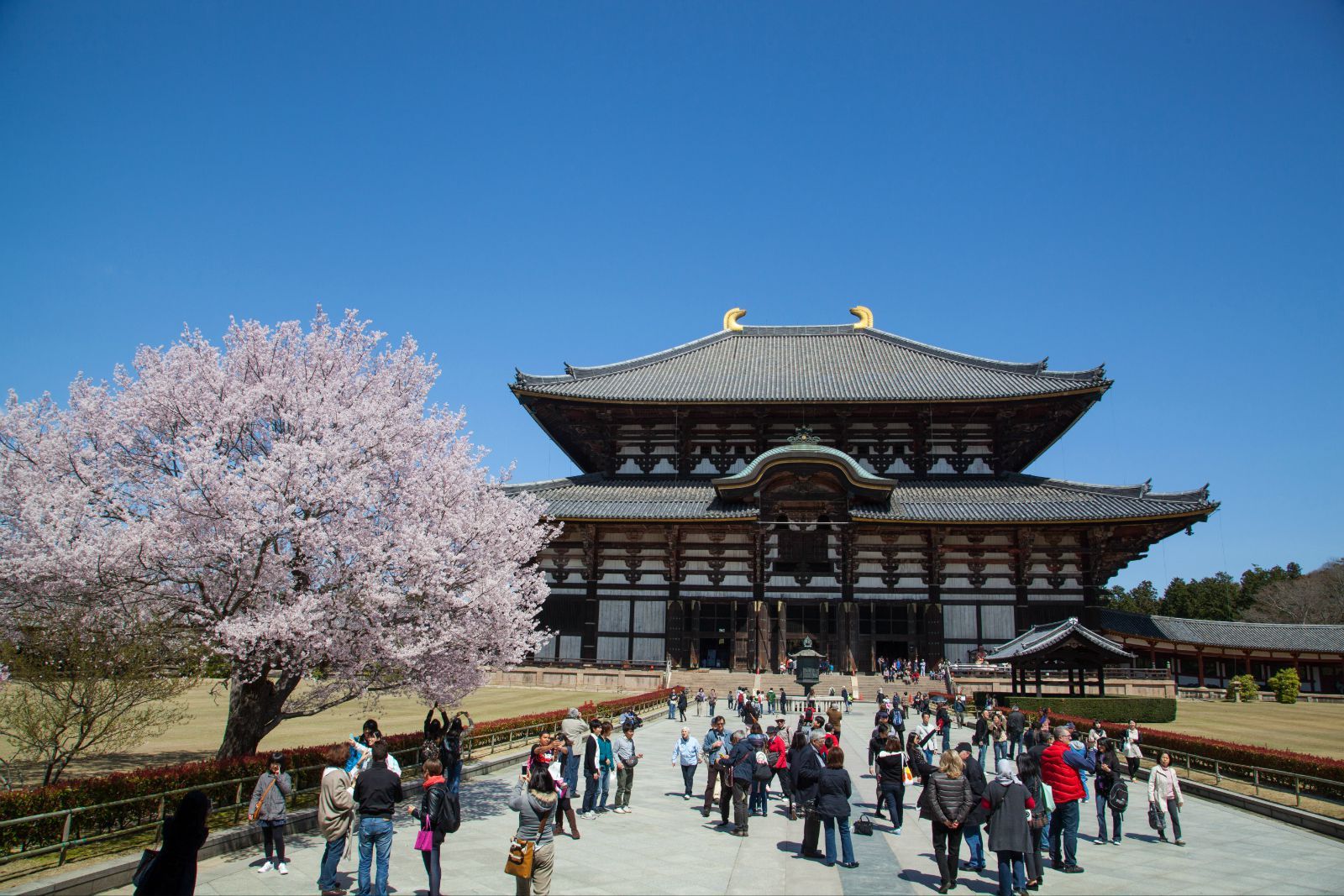 東大寺大佛殿,正面寬度57米,深50米,為世界最大的木造建筑。大佛殿內(nèi),放置著高15米以上的大佛像?盧舍那佛。東大寺院內(nèi)還有南大門、二月堂、三月堂、正倉院等。版權所有山東聊城聊之旅國際旅行社有限公司,轉載必究!南大門有很著名的雙體金剛力士像。二月堂能夠俯視大佛殿和眺望奈良市區(qū)。