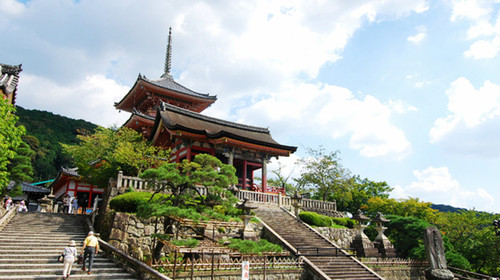 清水寺位于京都東部音羽山的山腰,始建于778年,是京都最古老的寺院,曾數(shù)次被燒毀并重建,后于1994年被列入世界文化遺產(chǎn)名錄。本堂前懸空的清水舞臺是日本國寶級文物,四周綠樹環(huán)抱,春季時櫻花爛漫,是京都的賞櫻名所之一,秋季時紅楓颯爽,又是賞楓勝地。清水寺的茶藝名列京都之首。