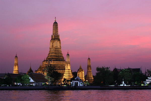 在湄南河及其支流上游覽,最引人眼球的,要算是那些宏偉壯麗、金光閃閃的寺廟、佛塔。這一群群多姿多彩的佛教建筑,與市內(nèi)高層建筑、居民住宅混建在一起,構(gòu)成一道奇特、亮麗的風(fēng)光。導(dǎo)游介紹:廟宇建在河左岸的較多,曼谷市內(nèi)約有一萬多間,所以泰國享有“千佛之國”、“黃袍之國”的聲譽(yù)。在湄南河及其支流兩岸,有幾座著名的寺廟:一是玉佛寺,它與大王宮相連,整座佛寺裝飾得金碧輝煌,富麗堂皇。大雄寶殿內(nèi)供奉的翡翠玉佛(釋迦牟尼),是泰國最重要最有價值的鎮(zhèn)國之寶。二是鄭王廟,位于湄南河西岸。它曾被定為鄭昭王(鄭昭王之父是華人)的御用寺院,其最富吸引力的建筑物是位于正中的“拍攀”大塔。這塔高79米,在晨曦之際,陽光照射,寶塔的頂峰會發(fā)出萬丈光芒,因此寺廟又被稱為黎明寺。三是臥佛寺,又稱菩提寺,它與鄭王廟正好隔岸相望,是曼谷最老和最大的寺院。寺內(nèi)供奉著一尊獨(dú)特大臥佛。這里一向被視為泰國第一所民間教育中心,故享有“泰國第一大學(xué)”之美譽(yù)。此外還有王孫寺、金佛寺、云石寺、金山寺等著名寺廟。