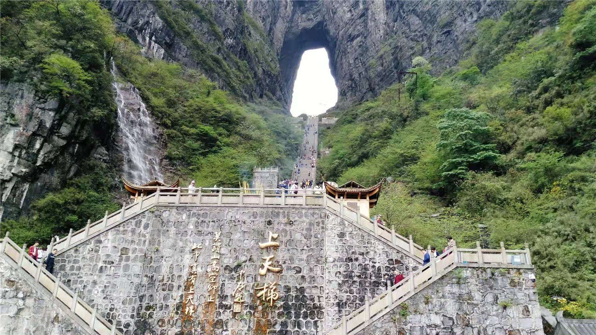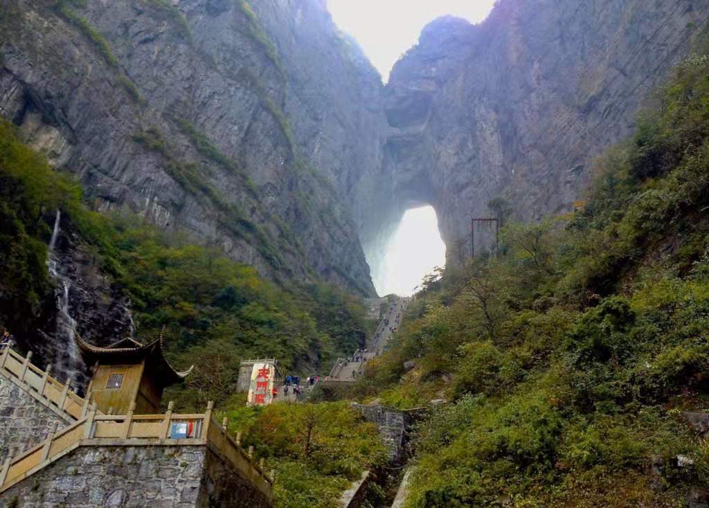 在古老的中國(guó)大地上,有一個(gè)人間通往仙界桃源的大山,武陵山脈之魂——天門(mén)山。您只要從天門(mén)山腳登上九百九十九級(jí)石階梯,就會(huì)到達(dá)通往仙界的大門(mén)——天門(mén)洞。版權(quán)所有山東聊城聊之旅國(guó)際旅行社有限公司,轉(zhuǎn)載必究!碩大的門(mén)洞足夠現(xiàn)代人駕駛飛機(jī)穿越而過(guò),是世界上最高的天然溶洞,該天門(mén)洞形成的時(shí)間比唐僧取經(jīng)時(shí)收取的由石頭爆出的大徒弟孫悟空還早500余年(公元263年溶洞形成)。它是天門(mén)山中一塊大石塊由于吸聚天地之靈氣噴溥洞開(kāi)而成。從此,凡人間偉大人物仙逝,該天門(mén)山上不管是晴空萬(wàn)里還是滿天星斗,都瞬間電閃雷鳴,風(fēng)雨交加,猶如天門(mén)洞落淚,傾盆而下……淚水沿著絕壁山崖瀑布而瀉,遠(yuǎn)遠(yuǎn)望去,似天上銀河下九洲。這現(xiàn)象至今仍無(wú)法開(kāi)解!