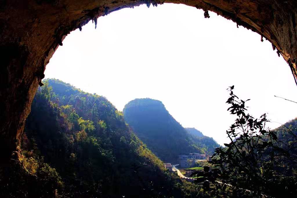 空曠而明朗,洞門(mén)前后的山峰,都很低,惟有此山獨(dú)尊。一洞空明,除悠悠白云,就是融融藍(lán)天,一塵不染。所以給1999年的飛機(jī)穿越此洞提供了絕好的條件。