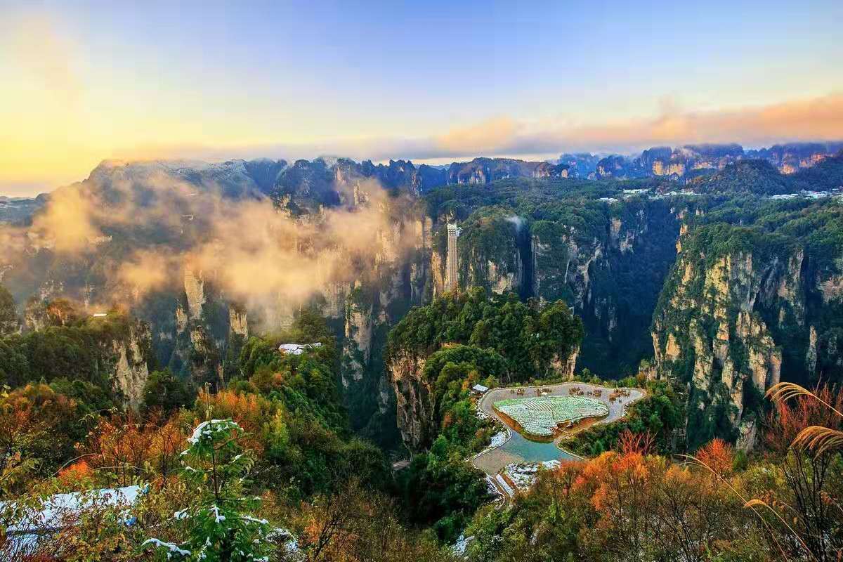 聚著30多座形態(tài)各異的峰林,仿佛一支神兵天將,藏于深山密林之中;空中田園坐落在天子山左側(cè)2000米的土家寨旁,海拔1000余米,版權(quán)所有山東聊城聊之旅國際旅行社有限公司,轉(zhuǎn)載必究!下面是萬丈深淵的幽谷,幽谷上有梯形良田,登上“田園”,清風(fēng)拂袖,云霧纏身,如臨仙境;鴛鴦瀑布位于老屋場的西部,一條白練似的飛流從百余米的石崖頂瀉下,中間因石頭阻截,將水分成兩股,然后流入水潭融為一體,故稱鴛鴦瀑布。