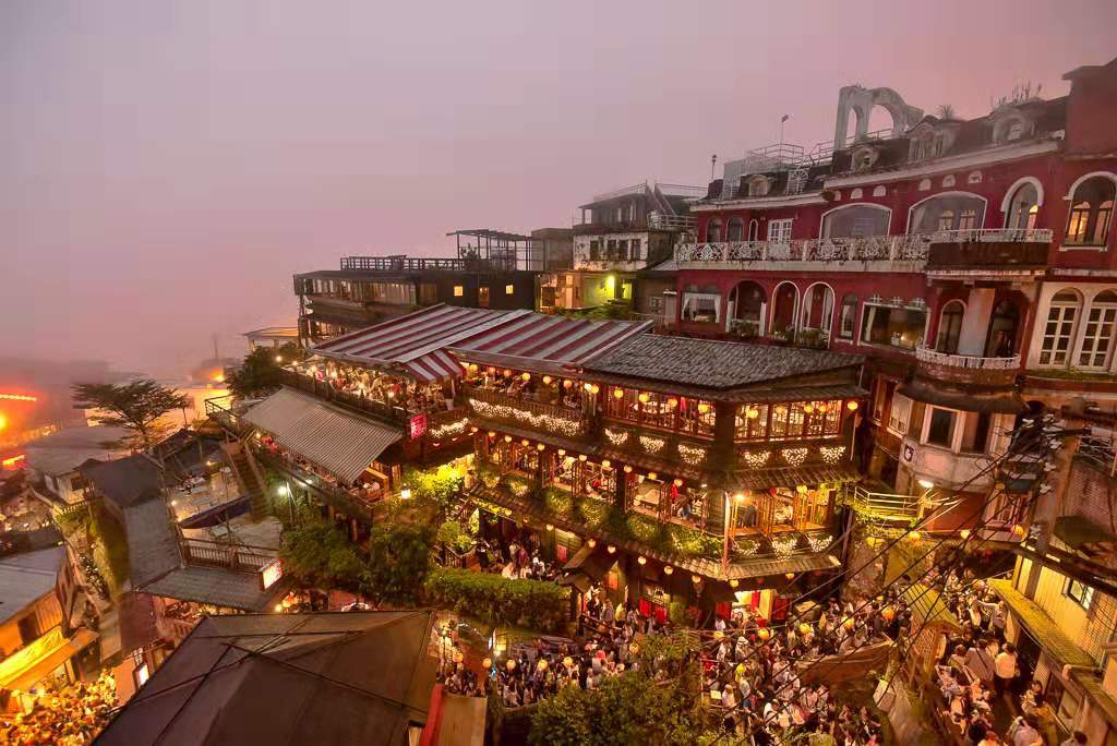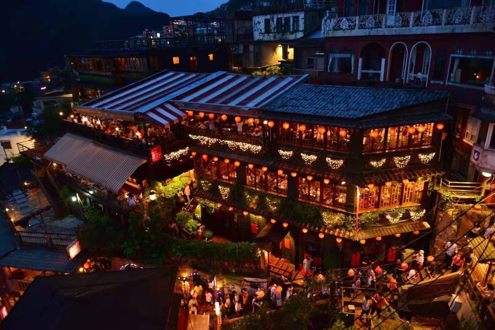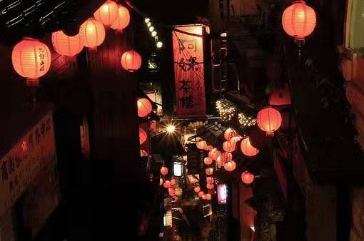 九份商圈主要范圍以聚集在基山街、豎崎路及輕便路等街道為主。人文歷史景觀如臺陽礦業(yè)事務(wù)所、彭園、五番坑口、升平戲院、九份金礦博物館等,而位于九份上,往下可俯視基隆嶼、八斗子、番仔澳、鼻頭角等地的海景,往上可眺望雞籠山景。九份日夜氛圍不同,于白日可俯瞰海景,感受九份老街旺盛人氣,于夜晚一切歸于寧靜,靜靜坐在茶樓間,細品九份寧靜氛圍,往外看,僅剩盞盞漁火于海面上。
