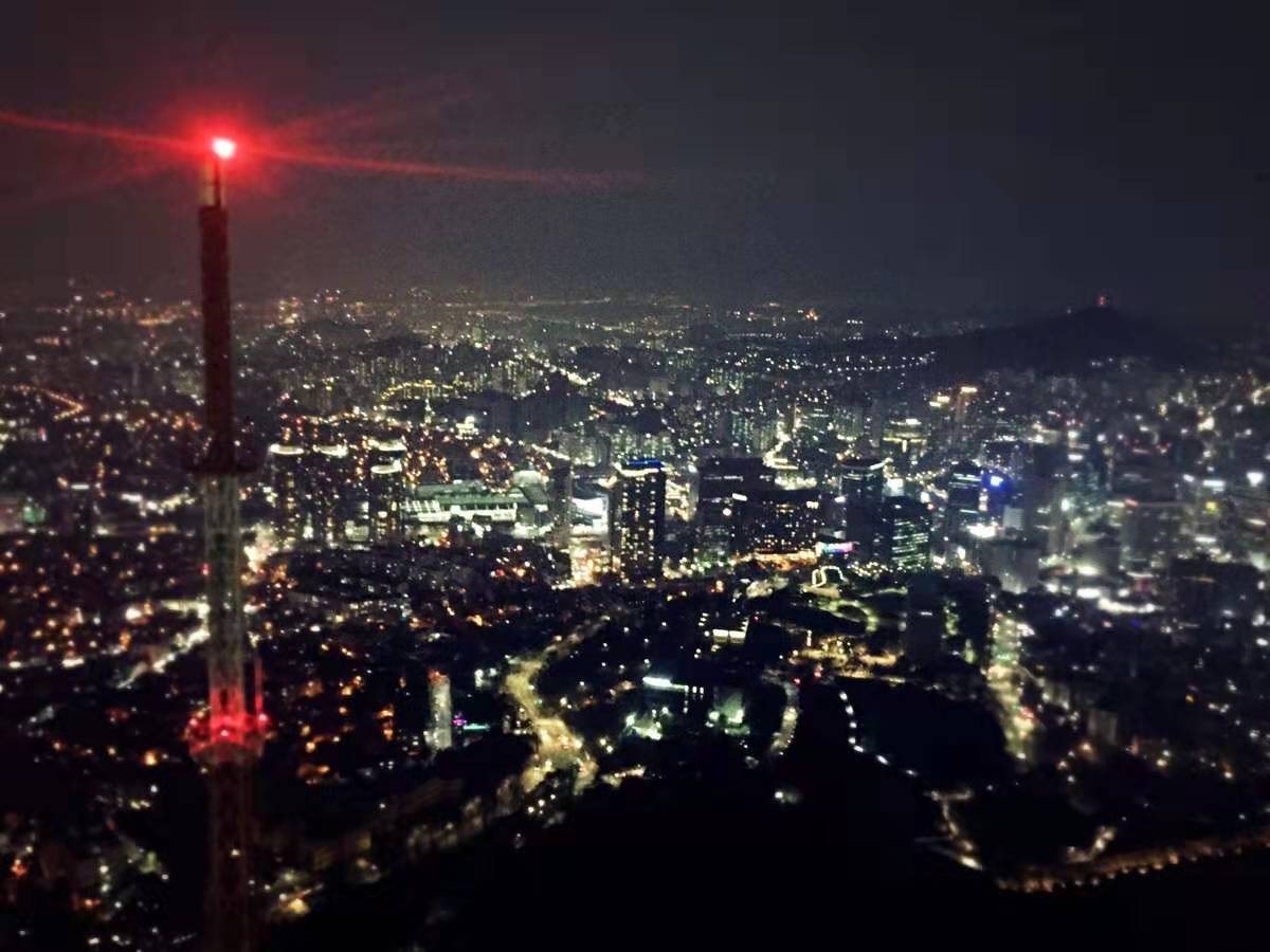 購買入場券乘梯進(jìn)入展望臺,最美的景觀還是夜景。位于同一層的“天上衛(wèi)生間”又是一道別樣的風(fēng)景,海拔400米,是首爾最高的衛(wèi)生間。