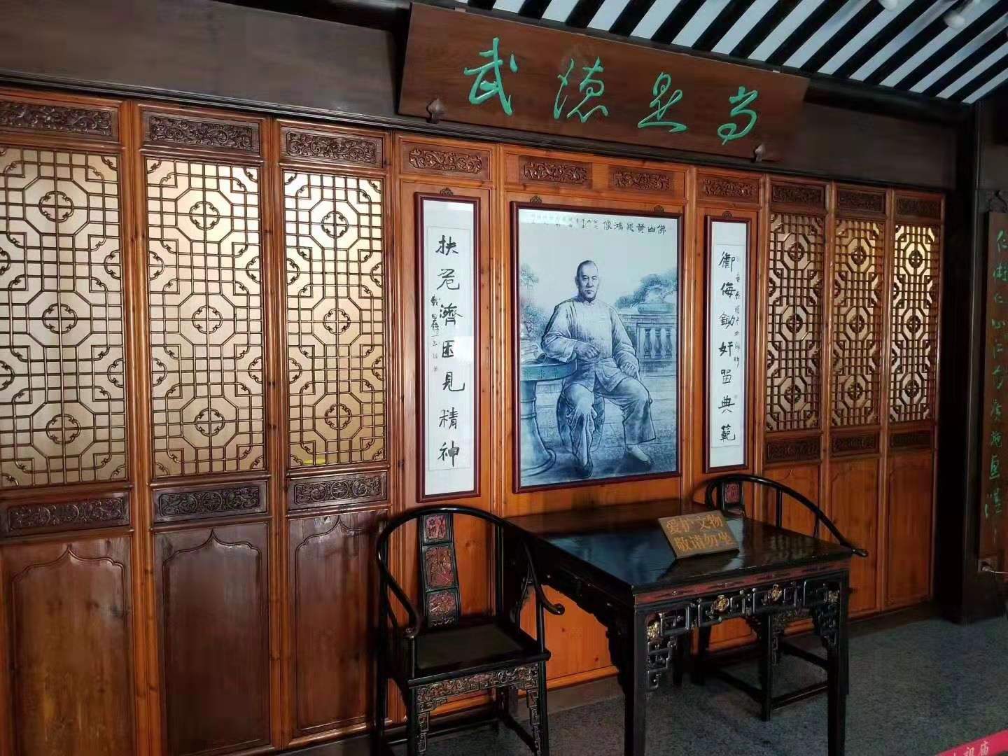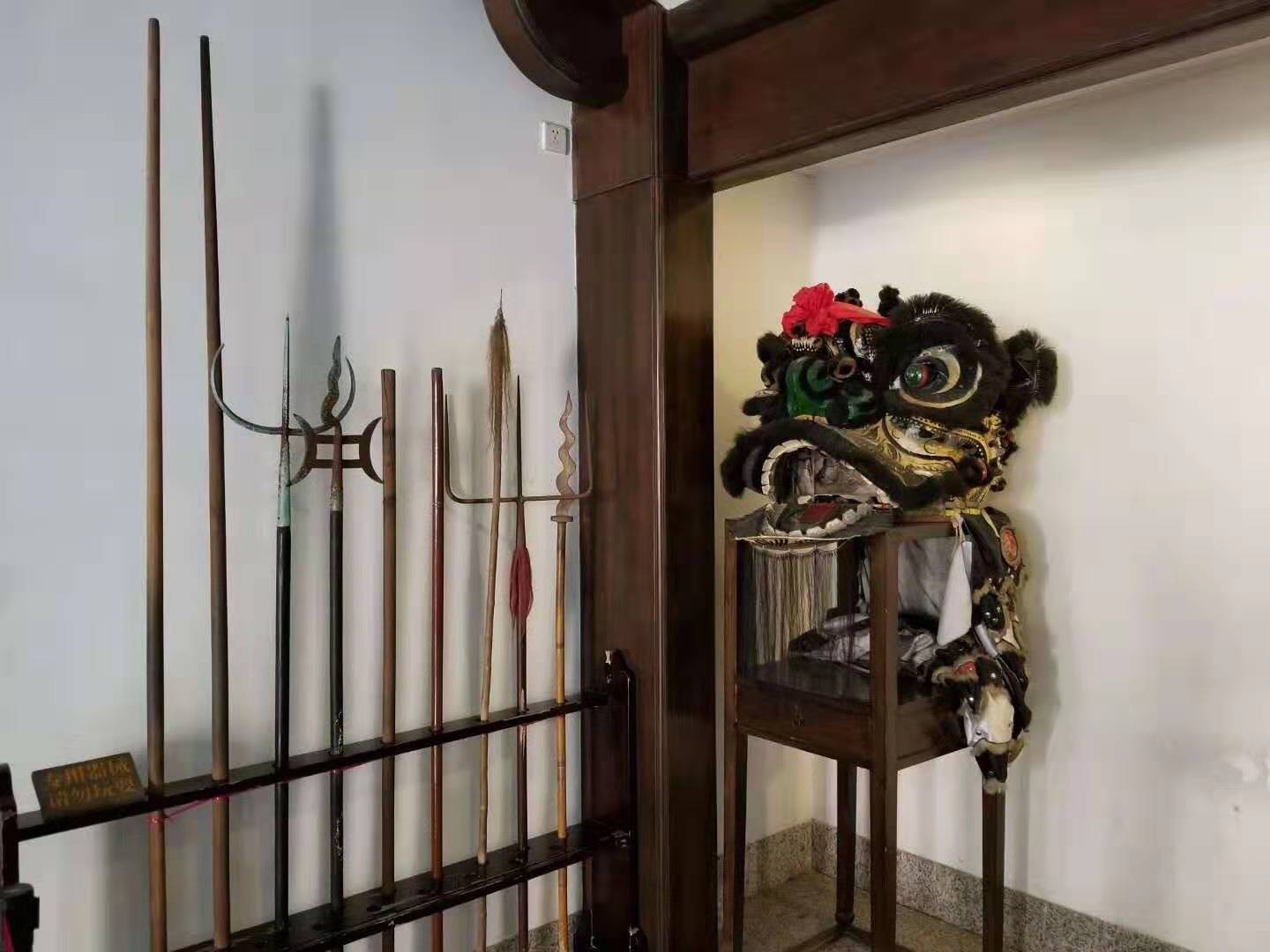 傳統(tǒng)和氣派,保存了傳統(tǒng)民居的合院式建筑規(guī)范,從梁架、柱礎(chǔ)、磚雕,檐板、屏風(fēng),門(mén)窗到欄板等建筑構(gòu)件,均用征集舊料,以保留歷史風(fēng)韻。演武廳的木雕大掛落是征集的清代文物,題材是象征富貴吉祥的《牡丹鳳凰》。室內(nèi)窗采用木雕滿(mǎn)洲窗,為滿(mǎn)周窗,以木雕花藤纏繞裝有色玻璃制成,可翻動(dòng),是清代至民國(guó)時(shí)期高檔嶺南建筑不可或缺之建筑裝飾。磚雕,正門(mén)山墻上嵌兩幅磚雕都是精品,是數(shù)年前修梁園時(shí)征集得來(lái)的清代嘉慶時(shí)物,以花鳥(niǎo)為題材,百花盛開(kāi),鵲啼雀躍,一派升平氣象。門(mén)前一對(duì)石獅子,是清代嘉慶二十三年(1888年)的佛山石雕作品,從祖廟藏珍閣移放黃飛鴻紀(jì)念館作門(mén)前獅。