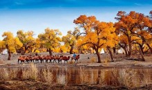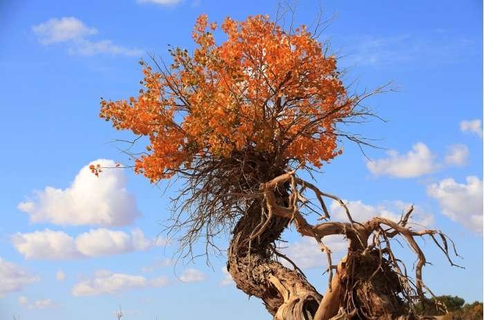 漫步在濃郁的胡楊林中,仿佛進(jìn)入神話般的仙境。茂密的胡楊千奇百怪,神態(tài)萬(wàn)般,或挺拔、或似蒼龍騰越,令人驚喜不已,嘆為觀止。每到深秋,樹(shù)葉金黃,矗立在沙海中的胡楊更顯嬌美動(dòng)人,風(fēng)光無(wú)限。