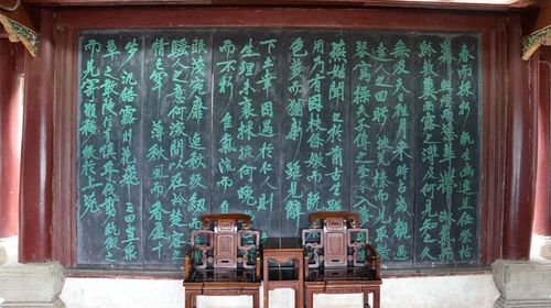 走入廟內(nèi),一樓入目皆為名人字畫(huà)木刻。 廟中不但建筑獨(dú)特,收藏的書(shū)、畫(huà)、雕、刻亦有“三絕”之譽(yù):文絕世、書(shū)法絕世,雕刻絕世。