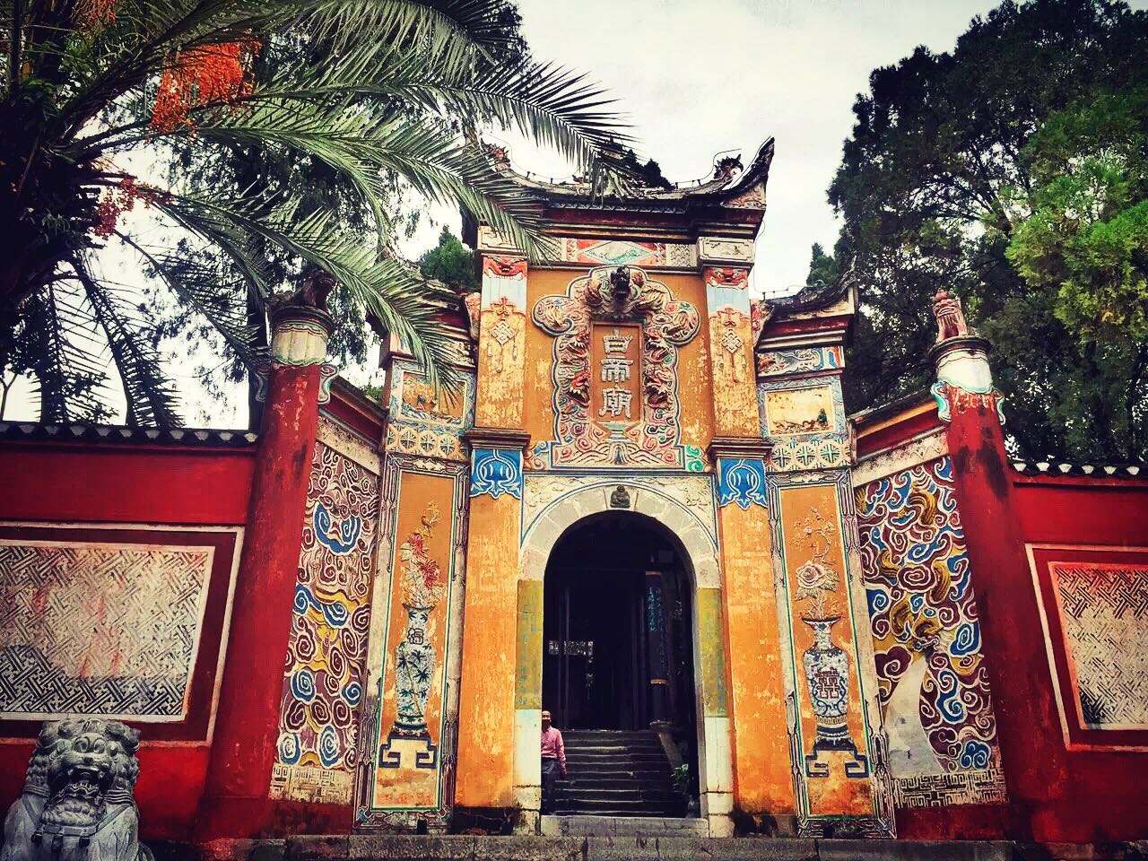 東漢建武十二年(36年),劉秀入川,公孫述戰(zhàn)死,白帝城毀于戰(zhàn)火.如今,城墻遺跡仍清晰可見。在公孫述稱帝的12年間,各地戰(zhàn)亂頻繁,而白帝城一帶卻比較安寧。后人為懷念他,在白帝山上建廟,立其像祭祀,故稱“白帝廟”。白帝廟坐落在瞿塘峽口的白帝山上。遠(yuǎn)遠(yuǎn)望去,紅墻顯影,樹木蔥郁,樓臺亭閣點(diǎn)綴其問。朝霞如錦、彩云繚繞之時,更有仙山瓊閣之美。