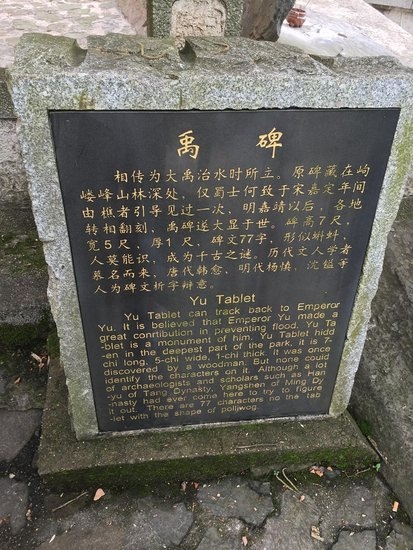 岳麓禹王碑高1.7米,寬1.4米,碑文分9行,每行9字,計(jì)77字,末行空四字。其文字形如蝌蚪,既不同于甲骨鐘鼎,也不同于籀文蝌蚪,很難辨認(rèn),很可能是道家的一種符錄,也有說(shuō)是道士們偽造的。但遠(yuǎn)在1200多年前,即為韓愈所聞及,還親登南岳岣嶁峰尋訪禹碑,并留有詩(shī)記。即使是唐宋時(shí)的贗品,作為紀(jì)念大禹治水之豐碑,也是十分珍貴的。全國(guó)有十幾處鐫立禹碑,據(jù)說(shuō)皆由岳麓禹碑模本復(fù)刻。