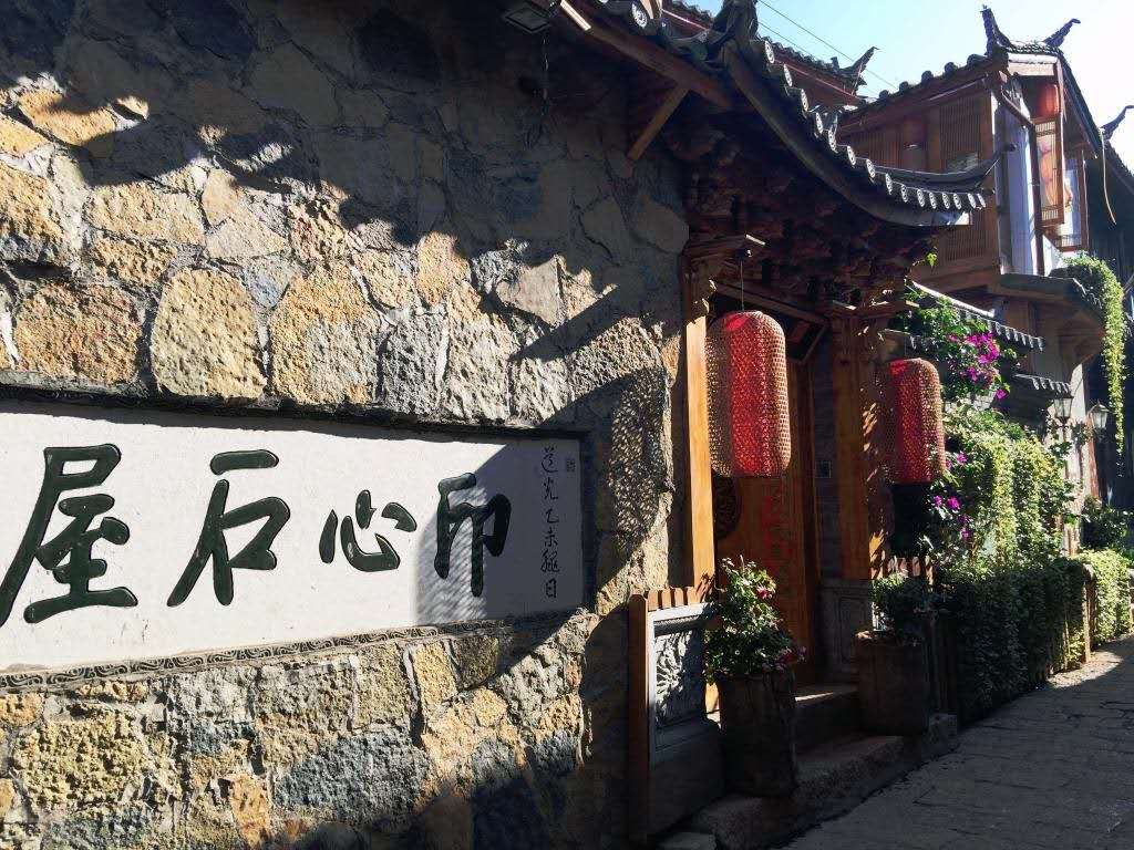 印心石屋石刻 位于白鶴泉西南、登臨云麓峰石徑的右側(cè),又名“御書(shū)亭”,今亭廢石刻仍存,系山墻上嵌的一巨幅漢白玉石匾,高0.93米、寬2.88米,中刻楷書(shū)“印心石屋”四個(gè)大字,端莊樸雅,筆力遒勁。匾左刻“道光乙未秋月”,右刻“御筆”,“太子少保兵部尚書(shū)兩江總督臣陶澍謹(jǐn)領(lǐng)恭摹”,正中上方刻有“道光之寶”的御璽篆章。周?chē)b飾著二龍戲珠的花紋。