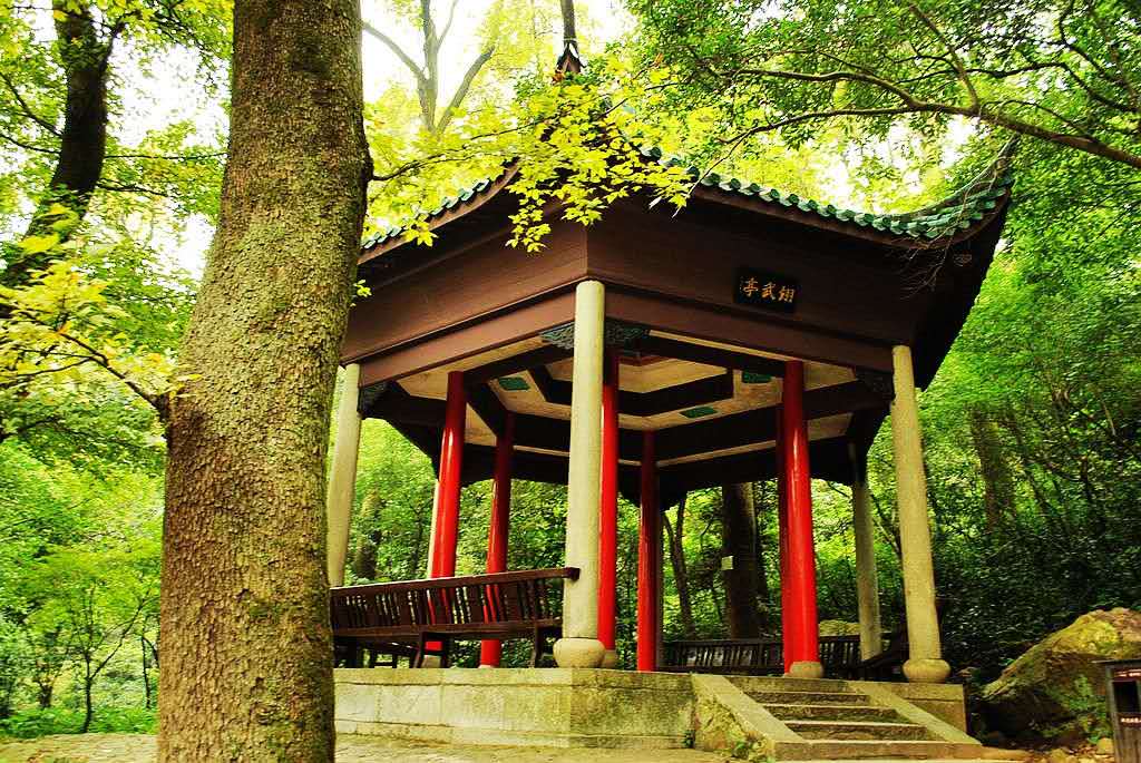打一百個(gè)人,像這樣的戰(zhàn)爭(zhēng),是非常的戰(zhàn)爭(zhēng),不可以常理論。像這樣不可以常理論的事,是湖南人做出來(lái)的?!备鶕?jù)史料記載,先后有55名辛亥革命志士入葬岳麓山。著名的有辛亥革命領(lǐng)袖、中華民國(guó)開(kāi)國(guó)元?jiǎng)?/span>黃興、護(hù)國(guó)軍將領(lǐng)、軍事家蔡鍔、武昌起義領(lǐng)導(dǎo)人蔣翊武、中國(guó)近代民主革命者陳天華等都長(zhǎng)眠于此。在麓山寺后,古樹(shù)環(huán)抱,有泉從石罅中溢出,冬夏不涸,清洌甘甜,清澈透明。白鶴泉有“麓山第一芳潤(rùn)"之稱(chēng)。相傳古時(shí)候曾有一對(duì)仙鶴常飛至此因而取名白鶴泉,有趣的是以泉水煮沸沏茶,蒸騰的熱氣盤(pán)旋干杯口,酷似白鶴。曾有寺僧砌石為井如鶴形,刻“白鶴泉"三字于崖上,并建有一石碑。清光緒三年(公元1877年),糧道夏獻(xiàn)云在泉上建亭,抗戰(zhàn)時(shí)被毀,解放后又新建一亭,碧瓦朱欄,頗見(jiàn)風(fēng)雅?,F(xiàn)泉側(cè)建有茶室,用清冽的白鶴泉水沏茶,供游客品嘗。