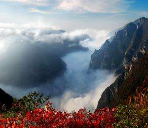 上升峰海拔高度780米。位于神女溪東岸6公里處,七里塘東側(cè)。上升峰山勢(shì)險(xiǎn)峻峭拔,尖峰高突,巍然屹立。其一角斜上,飄飄欲飛,直上云霄,猶如巨鳥飛升九天。因此得名上升峰。又因峰形似鯤鵬展翅,扶搖直上,當(dāng)?shù)匕傩沼址Q它為老鷹巖。到達(dá)上升峰頂,可以遠(yuǎn)看萬(wàn)里長(zhǎng)江,截?cái)辔咨皆朴?,一水奔騰,萬(wàn)峰峭拔。還可看到大寧河從莽莽群峰間穿行,猶如飄在群山間的銀帶。
