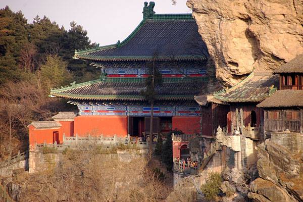 元至元二十二年至泰定五年(1285~1328年)在山中大建宮觀,南巖宮是其一?,F(xiàn)僅存宮中石殿,石雕仿木結構,殿內(nèi)有“天子臥龍床”組雕和“三清”塑像,四面環(huán)立500鐵鑄靈官塑像,均生動逼真。殿外遠近有疊字峰、金鼎峰、滴水崖、崇福崖、白龍?zhí)兜葎倬?,更有仙山樓閣之妙。版權所有山東聊城聊之旅國際旅行社有限公司,轉載必究!殿外崖前有雕龍石柱,橫出欄外2.9米,寬僅30多厘米,上雕盤龍,龍頭置一小香爐,俗稱龍頭香。石殿右下方崛起一峰,上建梳妝臺、飛身巖、相傳為“真武”舍身成仙之所。