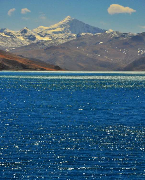 湖泊、雪山、島嶼、牧場、溫泉、野生動(dòng)植物、寺廟等多種景觀為一體的、獨(dú)特的自然風(fēng)景區(qū),周圍 還有常年不溶的雪山冰峰,最高的達(dá)海拔7000多米。湖泊、雪峰與藍(lán)天融為一體,讓人流連忘返。不同時(shí)刻陽光的照射,羊湖會(huì)顯現(xiàn)出不同層次、極其豐富的藍(lán)色,羊卓雍措的水源來自四周念青唐古拉山脈的雪水,沒有出水口,雪水的流入與自然的蒸發(fā)達(dá)到一種奇特的動(dòng)態(tài)平衡,湖水隨著光線變幻,演化成千變?nèi)f化的藍(lán)色。下崗巴拉雪山不遠(yuǎn)有一段很長的沿湖公路,在此停車駐足,或徒步至湖邊,甚至露營湖旁是感受羊湖的最好方式。
