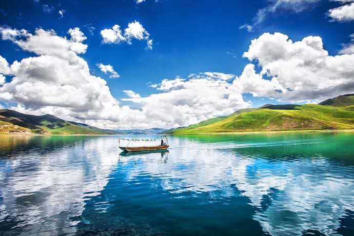 :牧場;“雍”:碧玉;“措”:湖。連起來就是“上面牧場的碧玉之湖”。這是字面上對(duì)羊湖的解釋,而羊湖在藏人心目當(dāng)中被看做是“神女散落的綠松石耳墜”,因?yàn)闊o論你在哪個(gè)角度,都不能看到羊卓的全貌,她有三個(gè)姐妹,空母錯(cuò),沉錯(cuò),巴久錯(cuò),以即古羊卓雍錯(cuò)四姐妹在巨大的湖盆中,手足相連,難以割舍,共同組成了讓我們肉眼看不到邊的圣湖。版權(quán)所有山東聊城聊之旅國際旅行社有限公司,轉(zhuǎn)載必究!她的身軀蜿蜒在群山中達(dá)130多公里,只有在地圖或是高空你才能驚喜的發(fā)現(xiàn)她猶如耳墜,鑲嵌在山的耳輪之上。不同時(shí)刻陽光的照射,她會(huì)顯現(xiàn)出層次極其豐富的藍(lán)色,好似夢(mèng)幻一般。羊卓雍措湖光山色,景色如畫,仿如置身人間仙境,羊湖是集高原