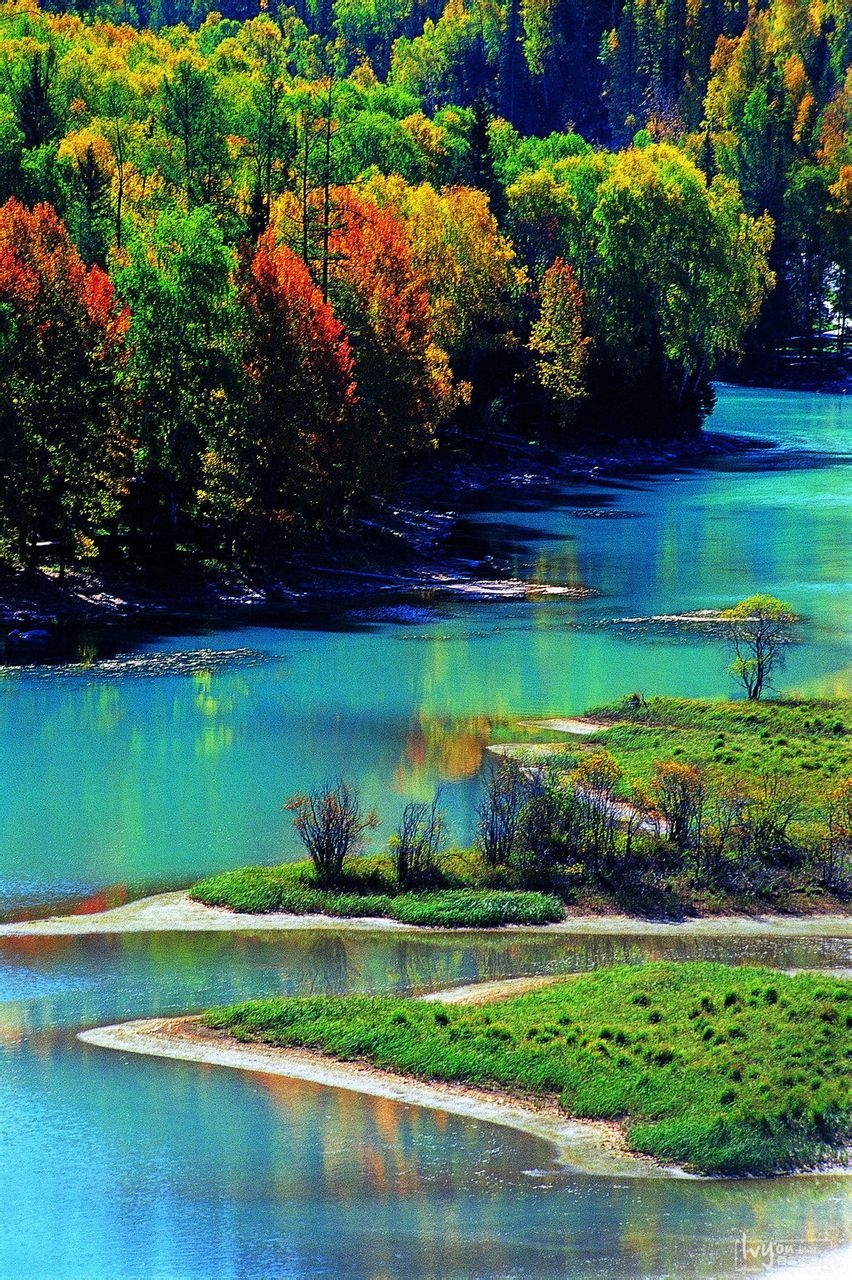 變化,確是嵌在喀納斯河上的一顆明珠??{斯河床在這里形成幾個由反“S”狀彎河曲組成的半月牙河灣,被稱之為“月亮灣”