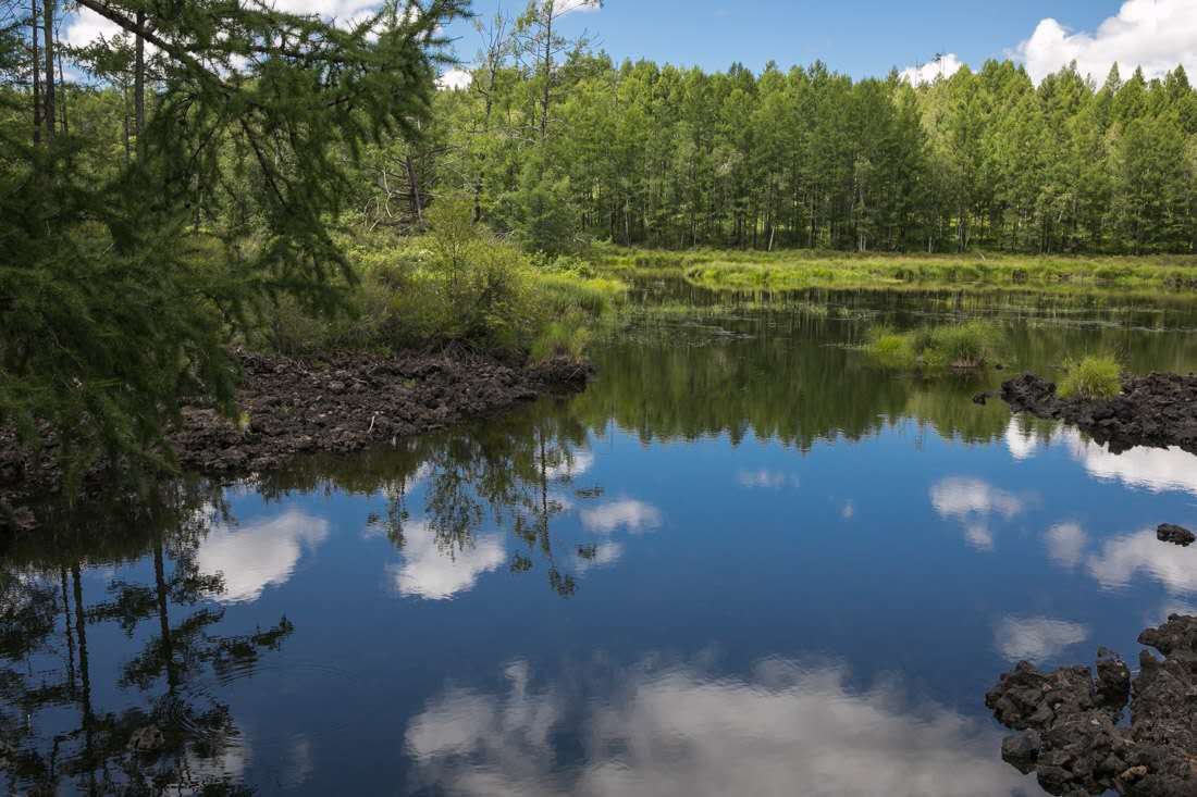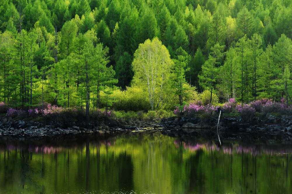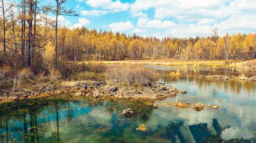哈拉哈河進(jìn)入石塘林之后有時(shí)流淌于地面,忽而又沉入地下;有時(shí)是水流湍急的瀑布,剎那間又造就了星羅棋布般的池塘與湖泊。清清的河水流經(jīng)石塘林,為石塘林中的萬(wàn)物提供了無(wú)限的生機(jī)。