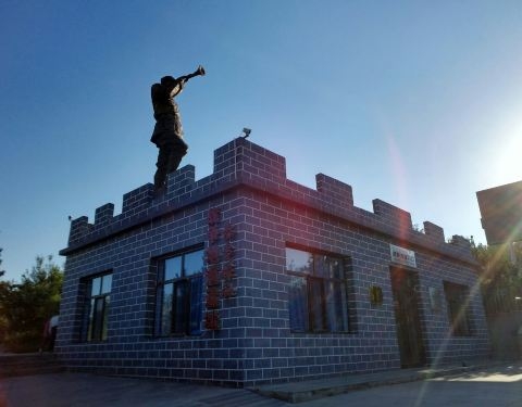 集寧戰(zhàn)役革命遺址——老虎山、舊面粉公司大樓及集寧南站水塔。這3處遺址形成三角形,相互對應(yīng),是戰(zhàn)爭時期集寧的重要軍事制高點(diǎn)。在解放戰(zhàn)爭時期,國共兩黨爭奪集寧,多次展開激烈戰(zhàn)斗,而老虎山、舊面粉公司大樓和集寧南站水塔均是爭奪最激烈的地方。記者一行首先來到建于上個世紀(jì)30年代的舊面粉公司大樓。這是一座主體為4層、局部為5層的鋼筋水泥結(jié)構(gòu)大樓,是當(dāng)時集寧最高的建筑。如今,經(jīng)過70多年歲月的洗禮,大樓隱藏在繁華的市區(qū)內(nèi),毫不起眼,只有樓身上留下的當(dāng)年國民黨飛機(jī)掃射的斑駁的彈孔,向人們無聲地訴說著戰(zhàn)爭的殘酷。這些彈孔見證了集寧保衛(wèi)戰(zhàn)的硝煙。