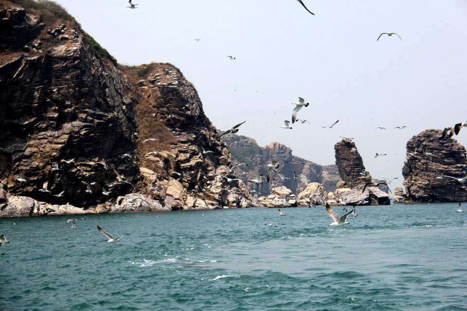 一條蛇每年至少要吃掉8—10只小鳥才能滿足生存所需的能量,這就意味著,每年將會(huì)有16—20萬小鳥供蛇食用。如果按蝮蛇捕食率10%來計(jì)算,每年將有200萬只小鳥飛落蛇島。因此,保護(hù)老鐵山的候鳥不僅在于保障遷徙,也是為了蛇島蝮蛇提供充足的食源?!▲B島又名海貓島,因?yàn)樗鼈兊慕新曄褙?,因?dāng)?shù)貪O民把海鷗稱為“海貓”而得名。鳥島位于旅順口董砣子7.2公里處的渤海之中,總面積0.3平方公里。與蛇島相距7海里,島上的植物、巖石和土壤與蛇島接近,但它卻是海鷗生息的樂園,同時(shí)有白眉蝮蛇與之和平相處。個(gè)別饑不擇食的白眉蝮蛇冒犯海鷗,必然遭到海鷗的群起而攻之,最后被海鷗啄起丟人大海。最令人驚奇得是:如果將蛇島和鳥島的兩類蛇交換“場地”,都不能生存下去,至今這還是一個(gè)待解之謎。來到鳥島大有“遙看碧波小龍鳳,崖前飛鷗似云行”之感?,F(xiàn)在我們大家如果感興趣的話可以自費(fèi)乘坐我們的游艇需要90分鐘的環(huán)島觀看,蛇島是國家級(jí)自然保護(hù)區(qū),一般人是很難得近距離觀看。蛇島周圍風(fēng)景優(yōu)美,有鹿石等名聲景點(diǎn),在乘船過程中可以看見難得一見的野生海豚,因?yàn)檫@里是海豚繁殖區(qū)。