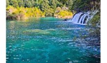 這一片景觀,還有緊傍森林的明鏡倒影池、掩映于杜鵑花叢間的婆蘿彩池和擁有彩池500多個(gè),鈣化景觀中色彩最為豐富的爭(zhēng)艷池。