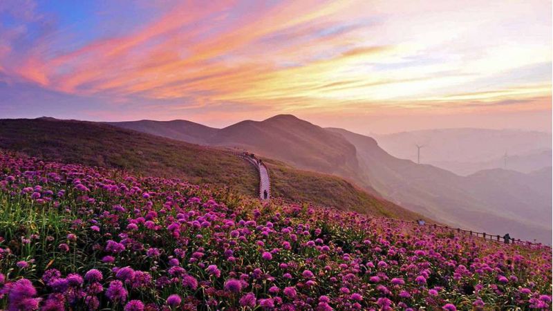 佛光是特殊氣候和地理環(huán)境下形成的光學現象,天氣驟變而造成較大水汽時,光線遇到這些水汽產生折射,才會形成佛光。在中國境內,僅在峨嵋山、梵凈山等少數地方出現過類似自然奇觀。烏蒙大草原佛光春、夏、秋三季都會出現,出現時間均在下午4點至6點左右,觀看‘草原佛光’,已成為慕名到盤縣觀光旅游的游客的向往。版權所有山東聊城聊之旅國際旅行社有限公司,轉載必究!同時,在烏蒙大草原,一臺臺新安裝的風電機組迎風而舞,似在歡迎遠方賓客。傍晚的高山草原,風車飛轉,霞光四射,金輝盡染。游客可俯瞰綿延峻嶺,仰望旋轉風車,體驗高山草原的愜意。