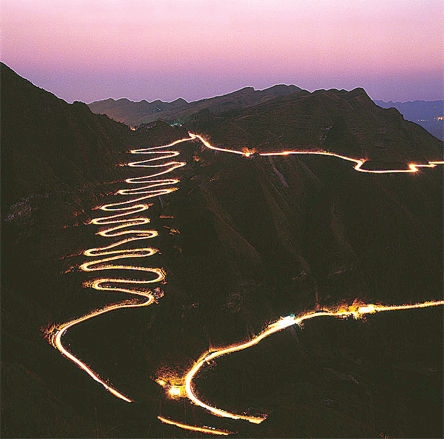 二戰(zhàn)時期,美國的援華物資經(jīng)過滇緬公路到達昆明以后必須要經(jīng)“二十四道拐”的滇黔線才能送到前線和重慶。二十四道拐成了中緬印戰(zhàn)區(qū)交通大動脈,承擔(dān)著國際援華物資的運輸任務(wù)。日寇曾多次派飛機對二十四道拐公路進行轟炸,欲截斷黔滇咽喉。美軍搶修后保留至今的二十四道拐公路,全長4公里,有效路面寬約6米,山腳第一道拐與山頂?shù)诙牡拦臻g的直線距離約350米,垂直高度約250米,坡的傾角約60度左右,驅(qū)小汽車由下至上,爬完24道拐約需8分鐘,由上至下約6分鐘,雖坡陡彎急,但無驚恐之感?,F(xiàn)由縣公路局養(yǎng)護,仍可通車,但只有少量車輛通行。
