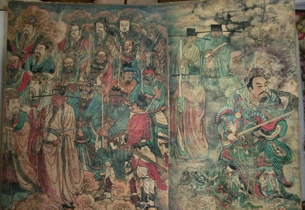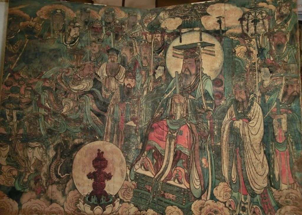 永樂宮的壁畫滿布在四座大殿內(nèi),壁畫總面積達960平方米。《朝元圖》描繪的是群仙朝謁元始天尊的情景:青龍、白虎兩神為前導,南極長壽仙翁和西王母等八個主神的四周,簇擁了雷公、電母、各方星宿神及龍、蛇、猴等多位神君,另有武將、力士、玉女在旁侍奉,全圖近300個神仙朝著同一個方向行進,形成了一道朝圣的洪流。在用色上,采用了傳統(tǒng)的重彩勾填方法。