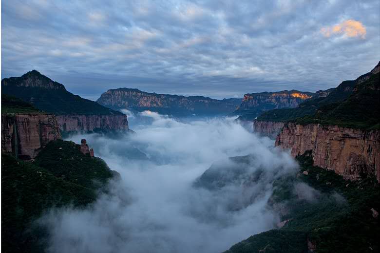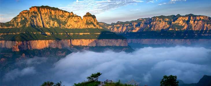 因“天下鐵頂(老爺頂)”處在一座四面絕壁環(huán)崖,如“太行第一紅巖峽谷”里的孤峰云島之上。太行云海勝景因地勢、海拔和氣候常在“天下鐵頂(老爺頂)”四周峽谷蒸騰升起,其勢洶涌澎湃,宛如海浪翻卷。版權(quán)所有山東聊城聊之旅國際旅行社有限公司,轉(zhuǎn)載必究!蒼蒼古跡惹隱惹現(xiàn),猶如仙山瓊閣。煙云鎖太行,置身云頂上。讓游人:“身臨天下第一頂,鳥瞰峽盆稀世景,云海飄波人欲醉,霧濤拍浪山已醒”。