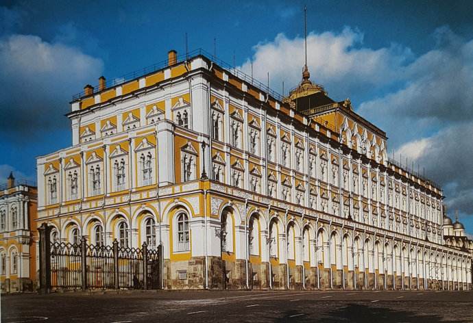 參觀克宮,需經(jīng)過“庫塔菲婭塔樓”。首先看到是會議大廈,這是一座現(xiàn)代化的建筑,有6000個座位,內(nèi)部裝飾豪華氣派,除開會外,也是高水平演出的地方。